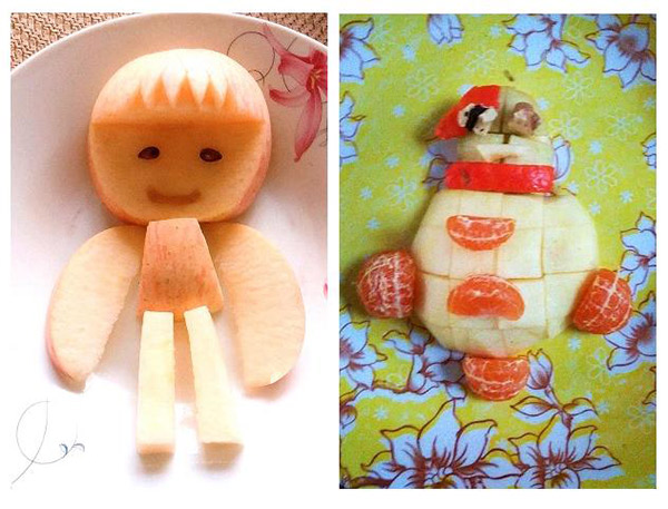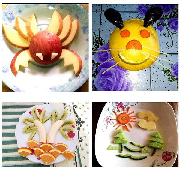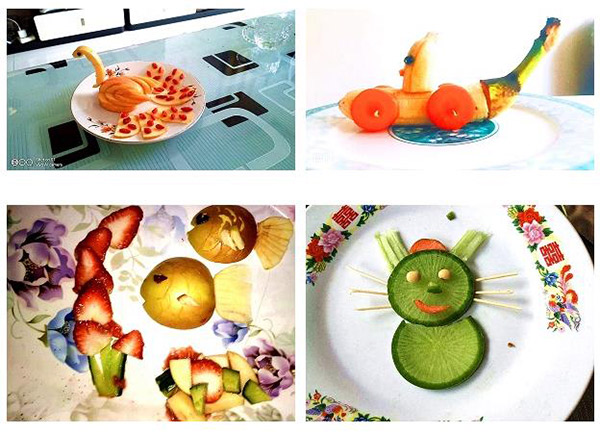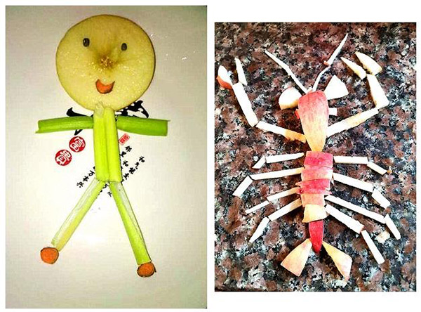 尽管有学校和老师们架起的空中课堂陪伴,可是居家隔离的生活也需要用情趣来装点。实践课程中的蔬果创意制作深受欢迎,同学们在老师的带领下,热情高昂,利用蔬果形状及颜色,动手操作,开发大脑,拼贴出不同造型的水果拼图,展现了学生们的无尽想象空间和无穷的创造力。