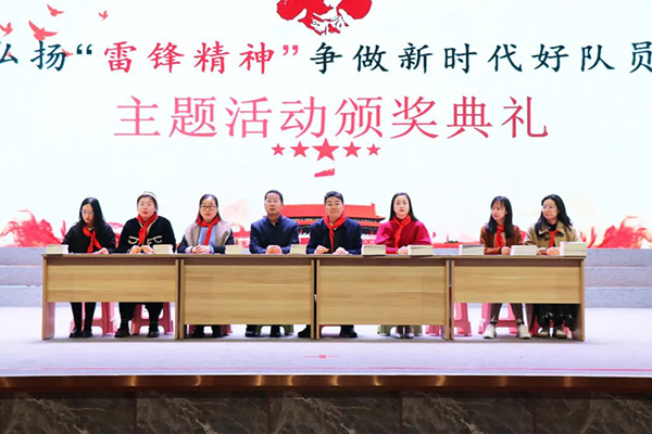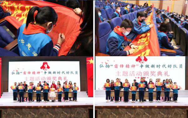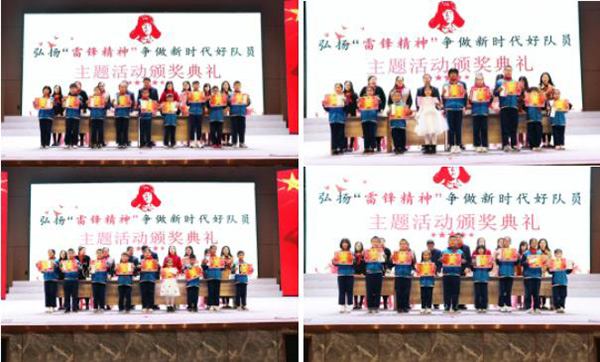 近日,诸城一中慈海学校小学部“弘扬雷锋精神 争做新时代好队员”主题系列活动颁奖典礼在学校学术报告厅庄严举行,学校副校长丁欣果,小学部校长苏茂山,小学部主任刘颖,教研组长李晓珊、王园园、薛卉、李建伟及干事刘妍、张琪为获奖同学颁奖。
