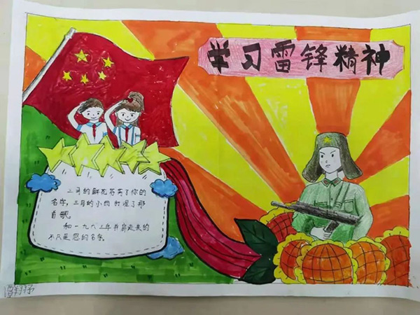 小学部组织各班级同学通过绘画、手抄报等形式,画出自己心中的雷锋。在美术老师的指导下,一个个生动可爱的雷锋形象跃然纸上,一字一句,一诗一画,传神地展示了孩子们对雷锋叔叔的敬佩之情。